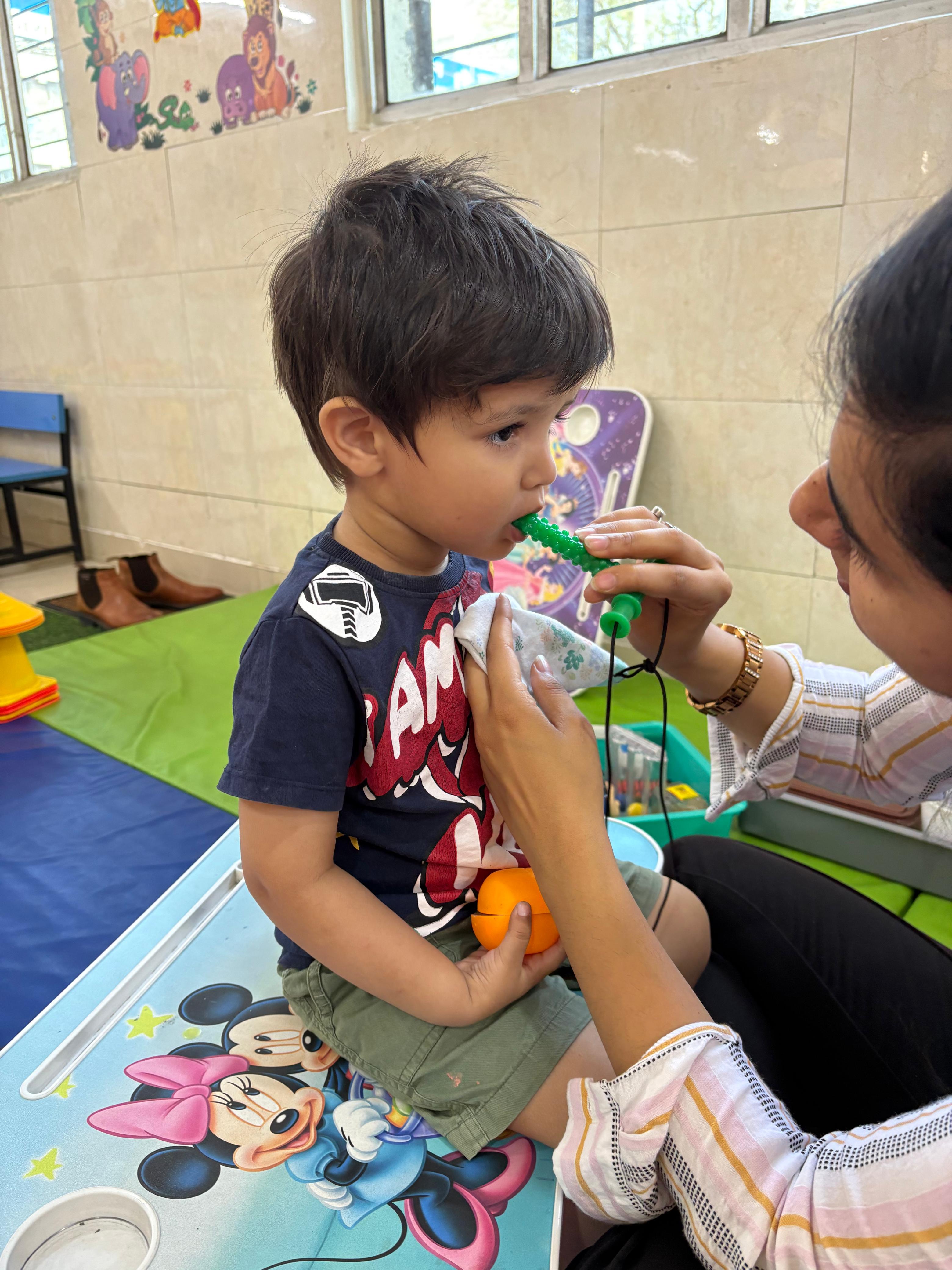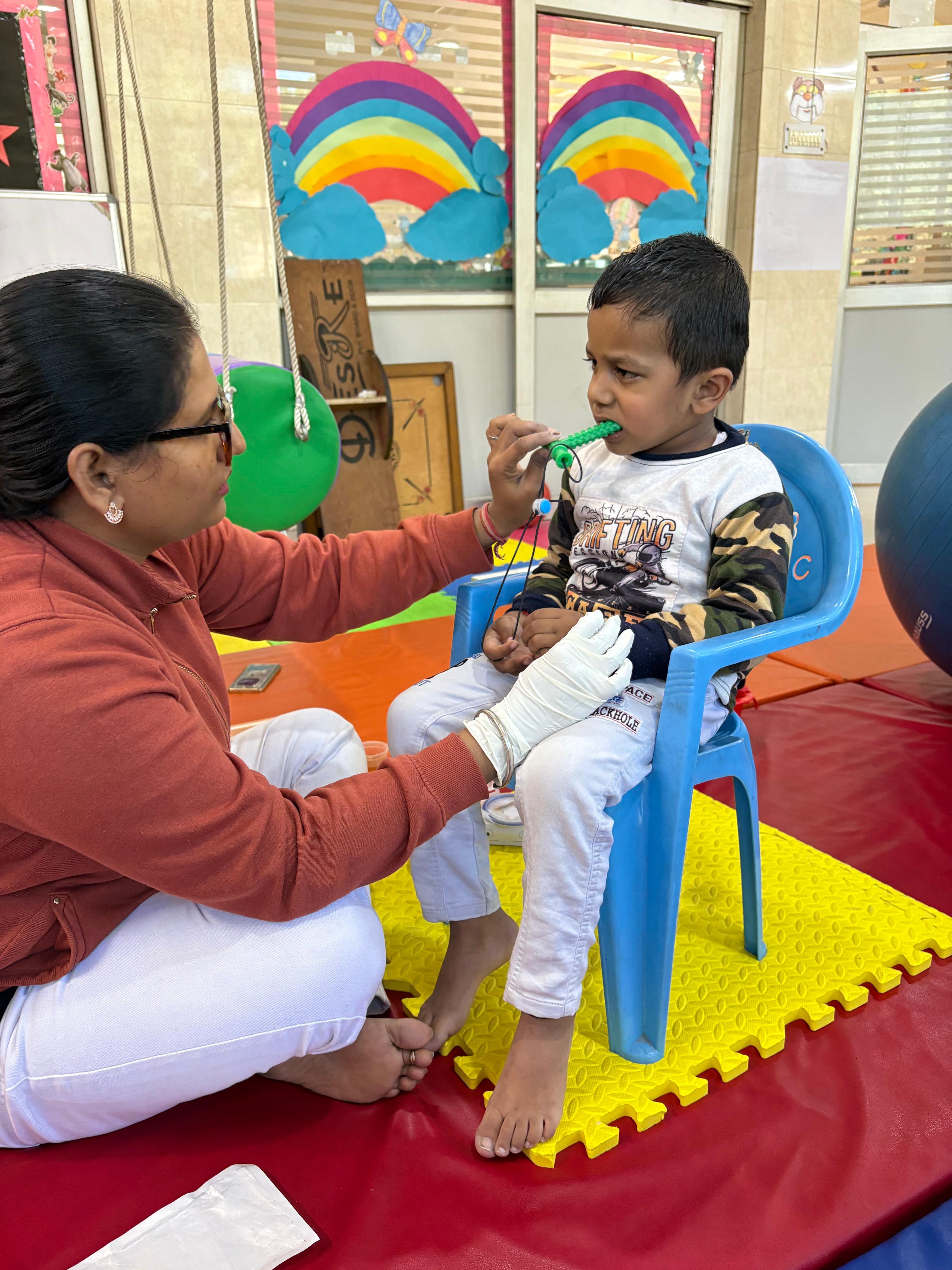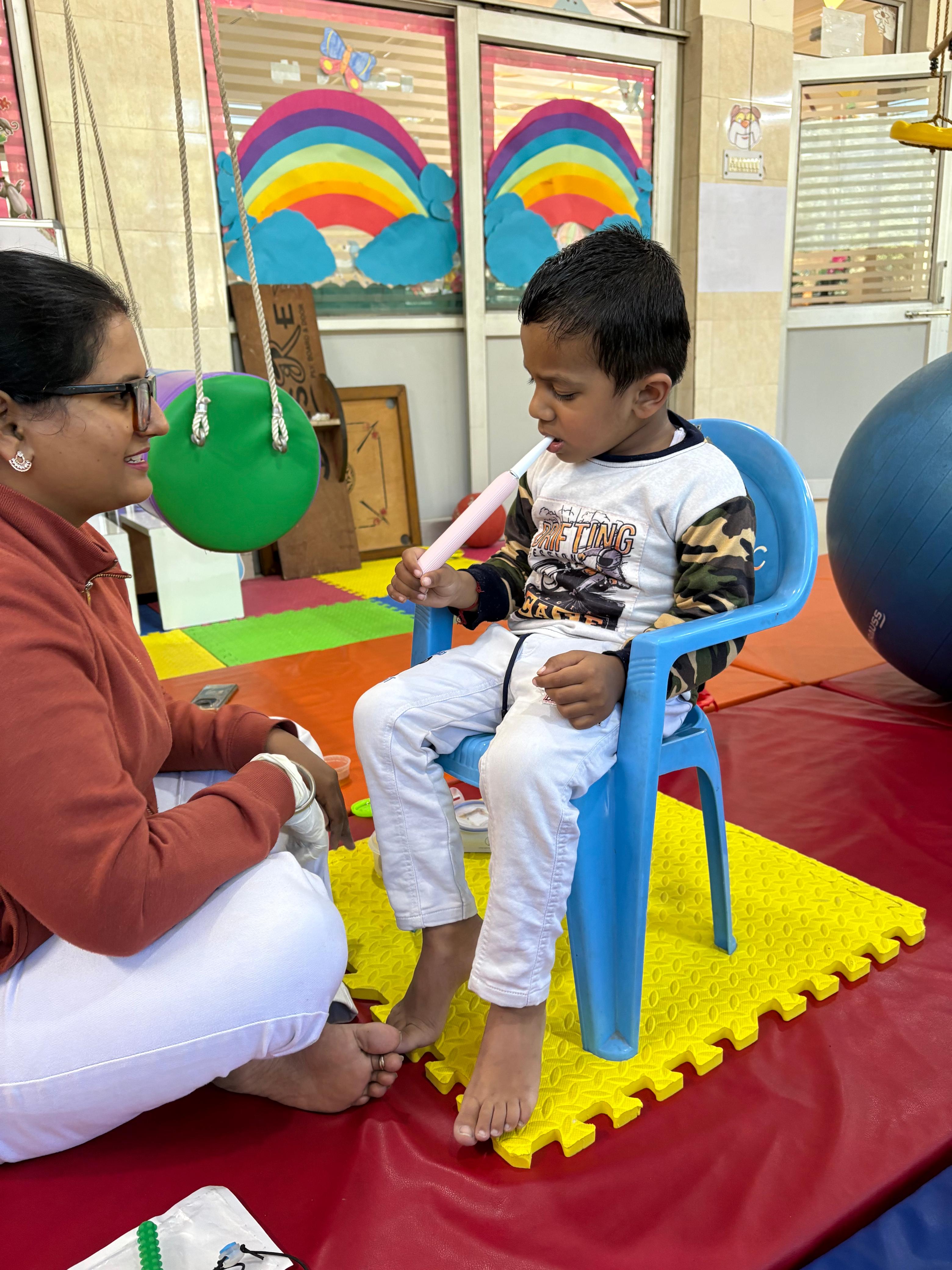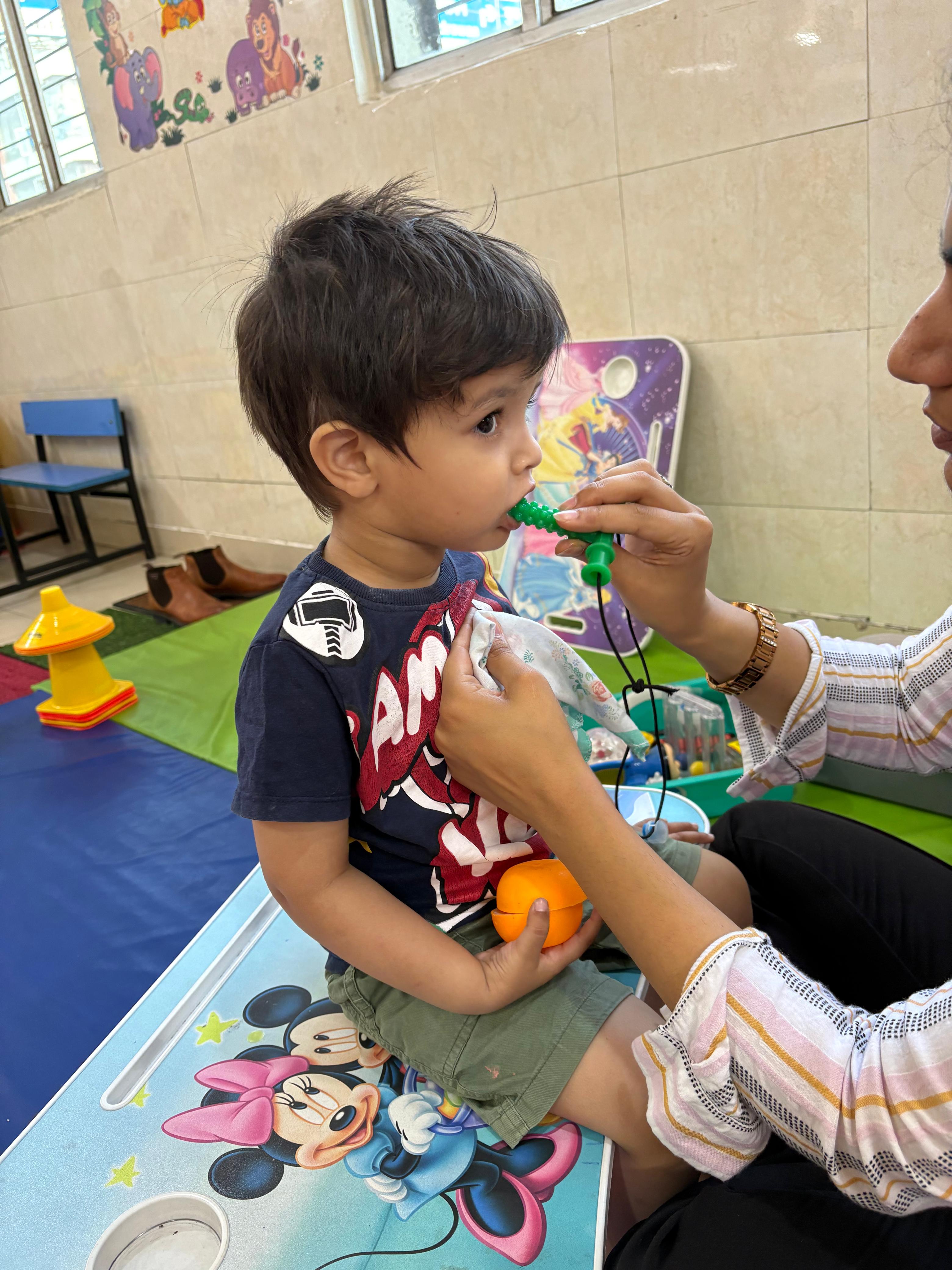 Children with difficulty swallowing or feeding issues receive specialized oromotor therapy to strengthen oral muscles and improve coordination.
